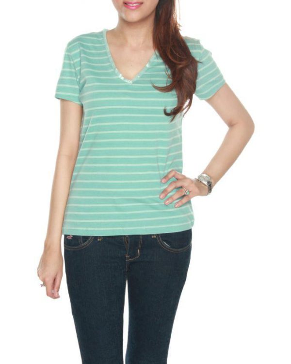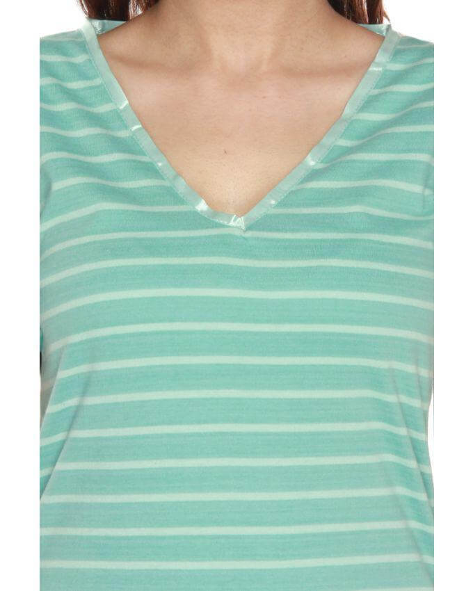 Mint colour t-shirt with V-Neck stripe and satin piping by Element Jeans Co. – This T-shirt is made using soft jersey fabric which would an Ideal Lounge wear.