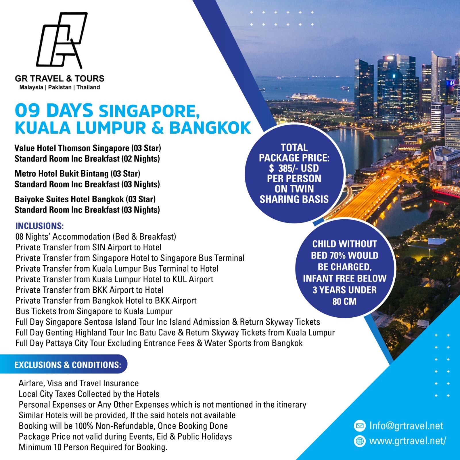 PACKAGE PRICE $ 385/- Per Person